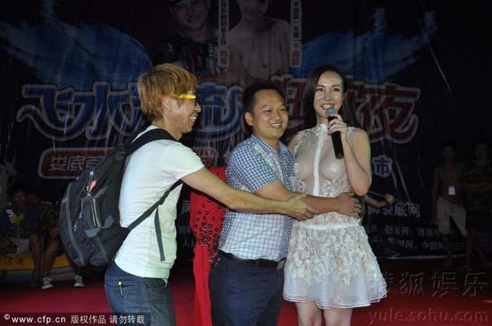 Can Lộ Lộ mới đây được mời về biểu diễn tại thành phố Liên Nguyên thuộc tỉnh Hồ Nam. Cô vẫn giữ tác phong và style quen thuộc của mình khi xuất hiện với chiếc đầm trắng mỏng tang khoe da thịt. Sự có mặt của cô khiến khán giả bên dưới như náo loạn hơn. Không ít các fan nam chẳng quản ngại ngần, vượt qua vòng vây của bảo vệ để chạy lên sân khấu mong được chụp tấm ảnh kỷ niệm cùng "cô nàng thích cởi".